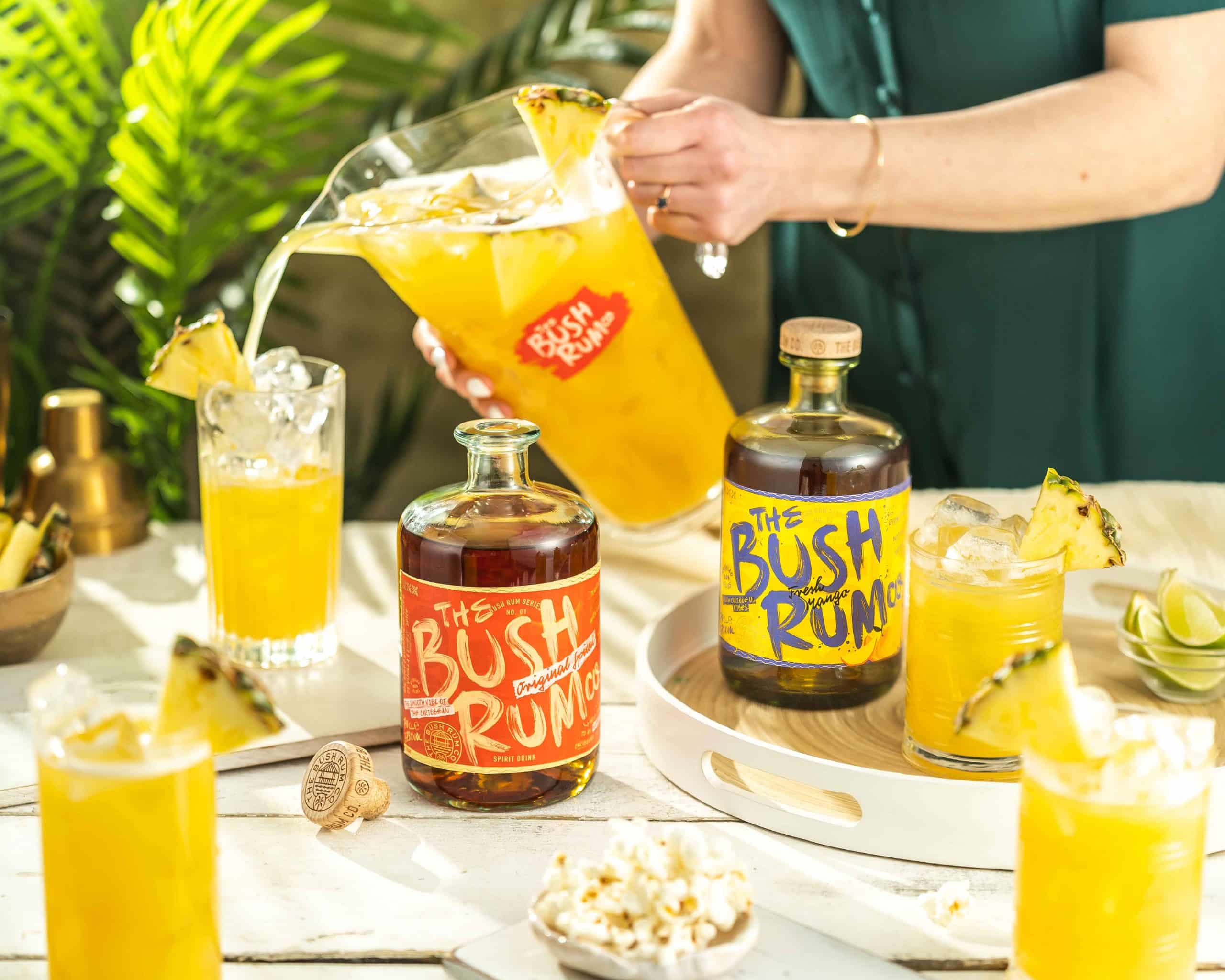 - Pour into 4 glasses and garnish each with a wedge of pineapple.